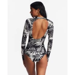 Billabong Spotted In Paradise UPF 50 Long Sleeve One-Piece Swimsuit-White Cap