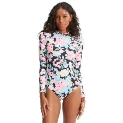 With a bold floral print and cheeky bum coverage, the Feelin Tropical Mock Neck long sleeve swimsuit is ready to bring the heat. The fabric is lightweight and flexible, made with recycled poly material that offers enhanced sun protection, plus a performance-driven fit that helps you move like a pro.