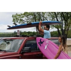 These soft board racks wraps around the inside of your vehicle and allow you to secure your boards to the roof. The special soft padding and extremely sturdy buckles ensure that your boards will not slip or move around during transit. This system will work on most vehicles, with or without gutters.